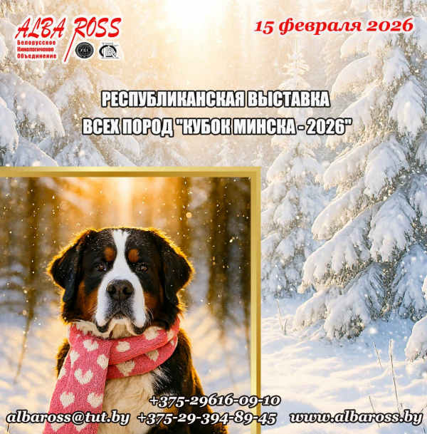 КИНОЛОГИЧЕСКОЕ ОБЪЕДИНЕНИЕ «АЛЬБА РОСС» ПРИГЛАШАЕТ НА ВЫСТАВКИ СОБАК В ГОРОДЕ МИНСКЕ